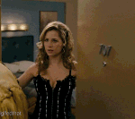Sexy Jenna Fischer seductively welcomes her lover to the door and nothing but lingerie before patting him onto the bed where she allows him to play with her perfect chest leading to a wild sex session.